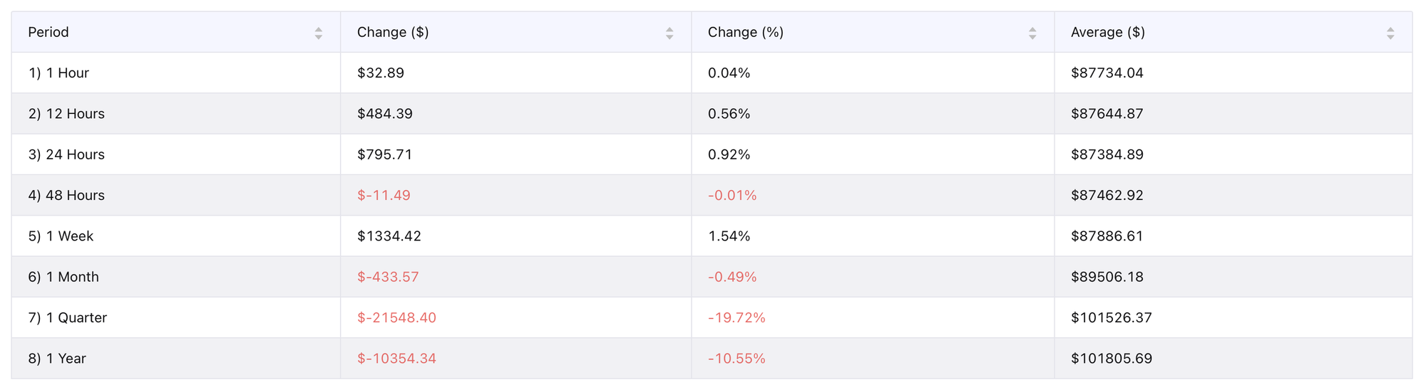 BTC drawdown over the past 3 months reached -19.7% (-$21.5K), with negative annual performance: -10.5% (-$10.4K). Meanwhile, the short-term picture has stabilized: week +1.5%, month roughly flat (-0.5%). Average price over the past 3 months ($101.5K) and year ($101.8K) nearly coincide. This underscores that for most of the period the market traded above current levels, with the main weakness concentrated in the recent decline. A double-digit 3-month drawdown is significant but not anomalous for Bitcoin. What matters more than the correction itself is its structure: stabilization at current levels after a sharp decline indicates a pause/consolidation and an attempt to form a local base. Confirmation of support will come from holding the range on subsequent tests.