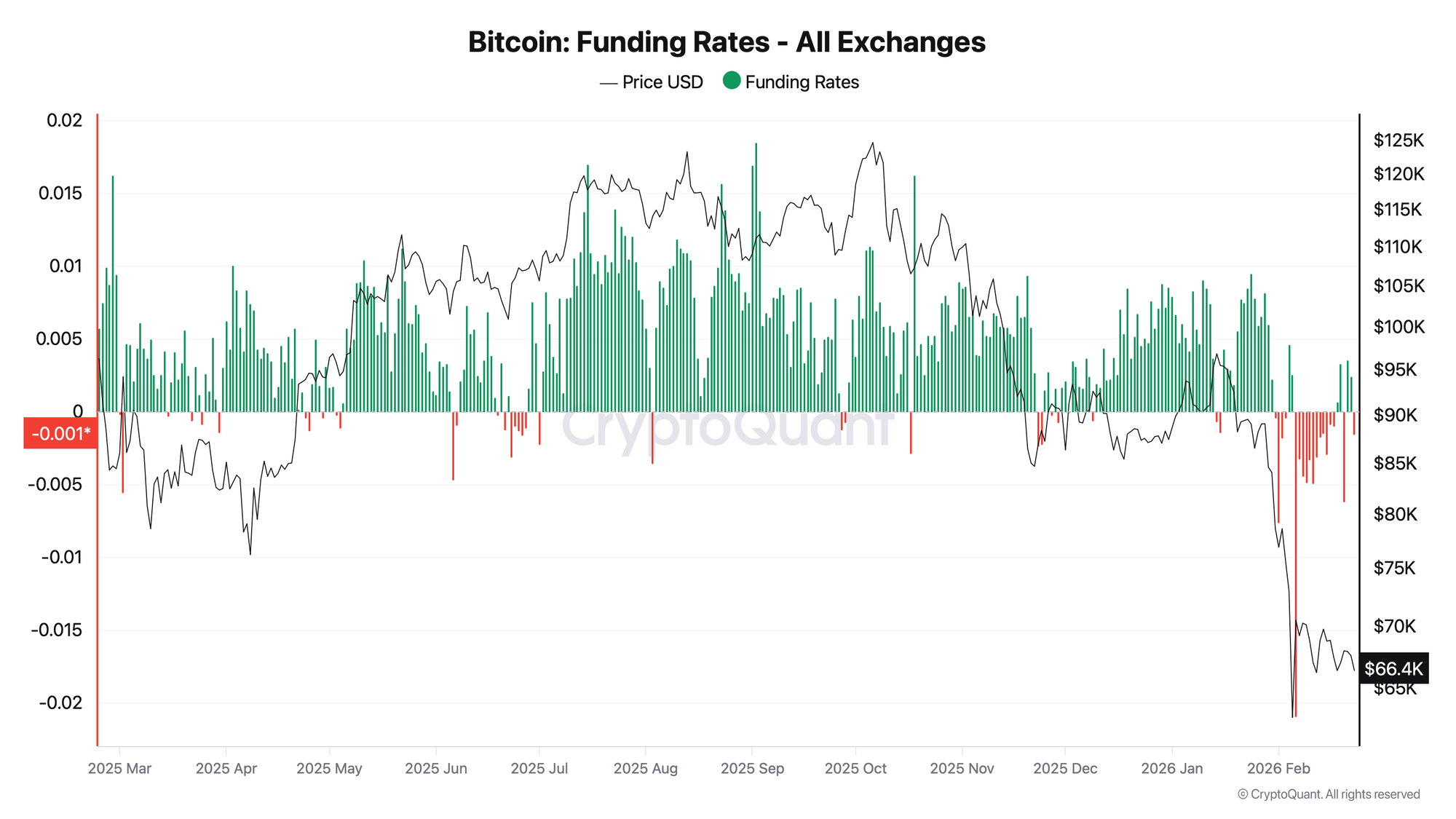 Note on data in this guide: All historical values are aggregated daily data across all exchanges (CryptoQuant All Exchanges, May 2016 - Feb 2026, n=3,572 days). Aggregated daily funding differs from the "standard" per-8h value of a single exchange. To approximate per-8h: divide by 3.