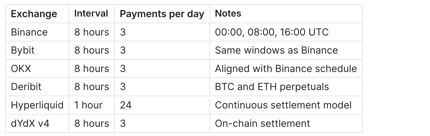 The 8-hour interval is an industry standard but not a universal rule. Understanding the differences matters when comparing funding data across platforms.