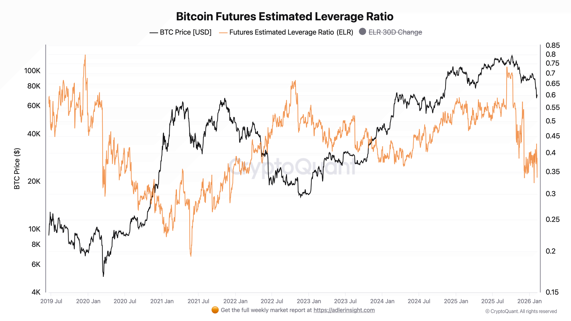 What happened after: BTC initially recovered to ~$112K but continued declining over the following months. By February 2026, BTC was trading near $70K. The reason: ELR remained above 0.50 post-crash, indicating the deleveraging was partial. The market needed months to fully unwind the excess.