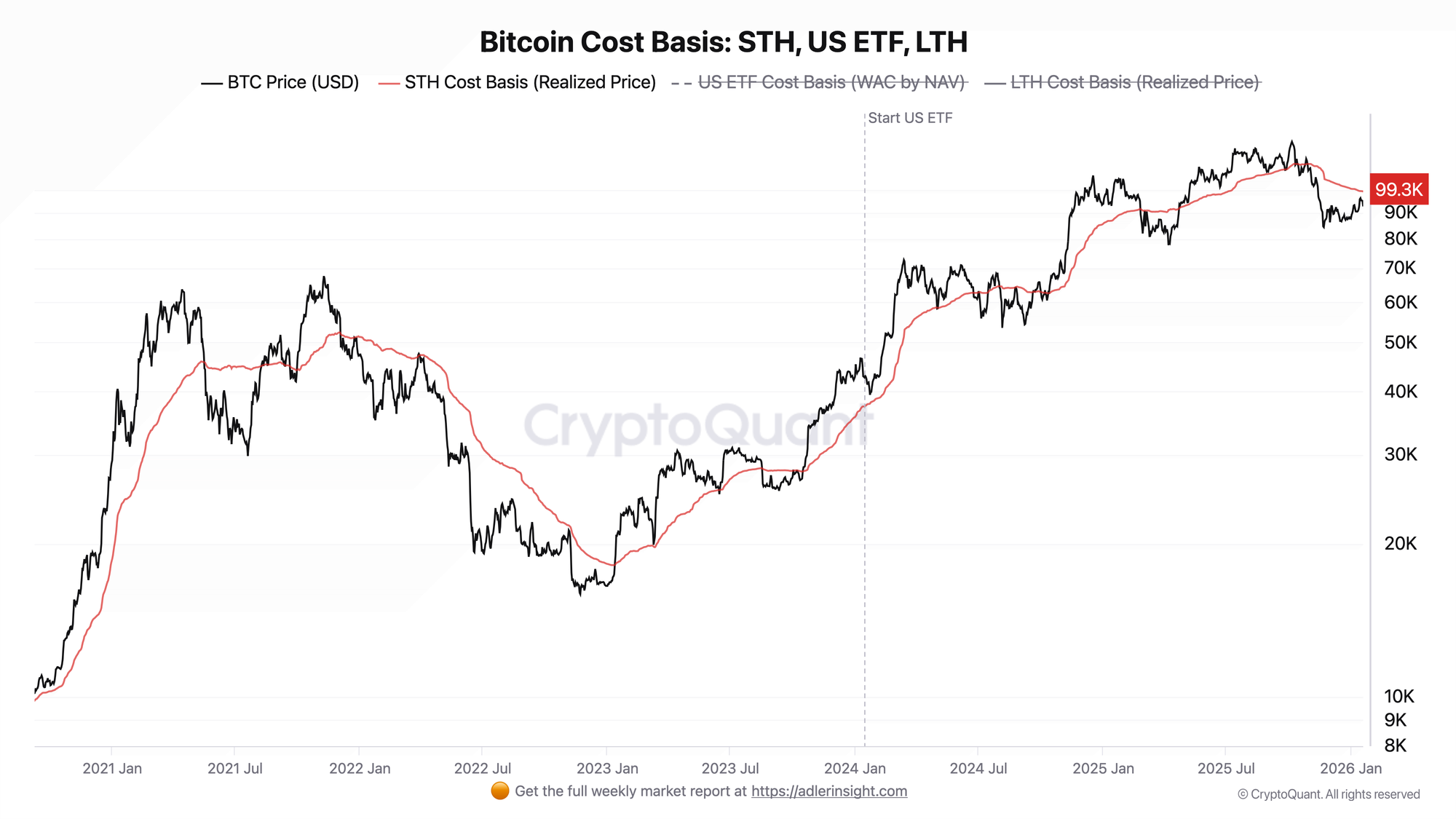 STH Realized Price represents the aggregate cost basis of Short-Term Holders. During bull markets, this level acts as structural support-new buyers defending their positions creates natural demand. Loss of STH Realized Price historically marks regime breakdown, the transition from healthy expansion to distribution or bear market conditions.