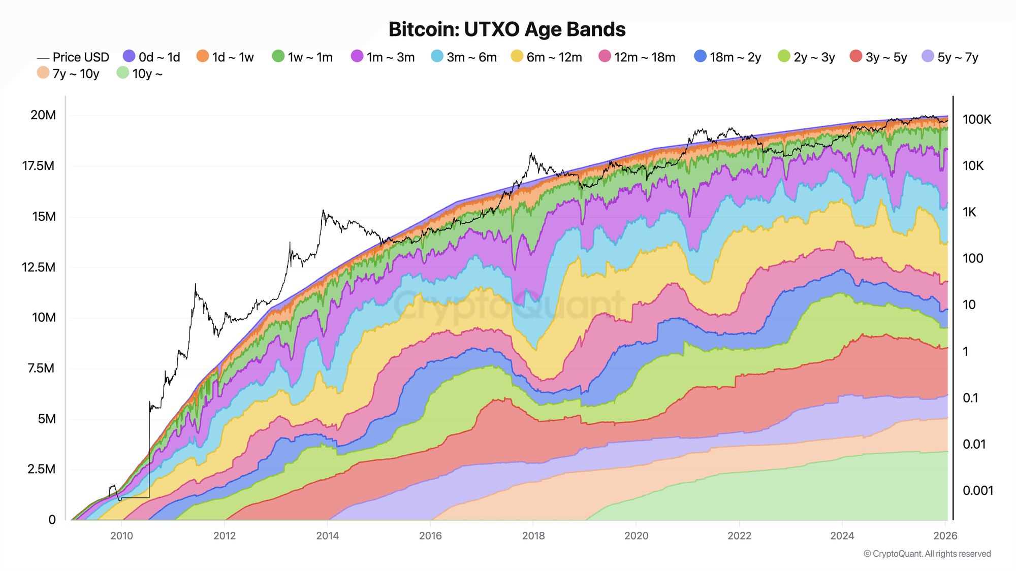 This cohort framework is not proprietary. It is widely adopted by institutional analytics providers including Glassnode, CryptoQuant, and Coin Metrics, each applying variations of the same underlying logic to model holder behavior.