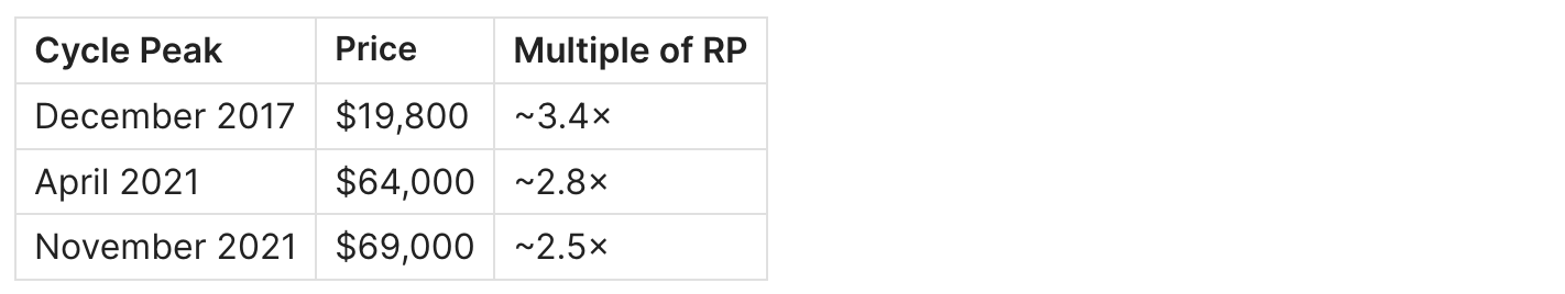 - Price reached 2.8× Realized Price
