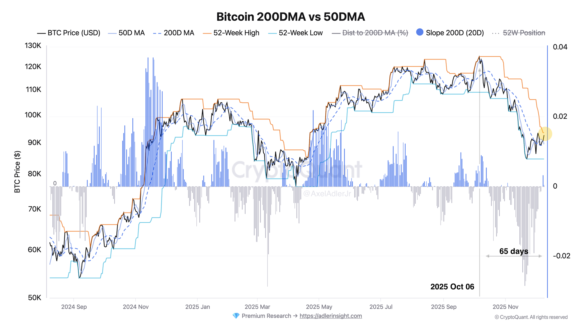 Bitcoin showed a positive 200/20DMA slope for the first time in a month and approached the 52-Week High range amid expectations of a Fed rate cut.