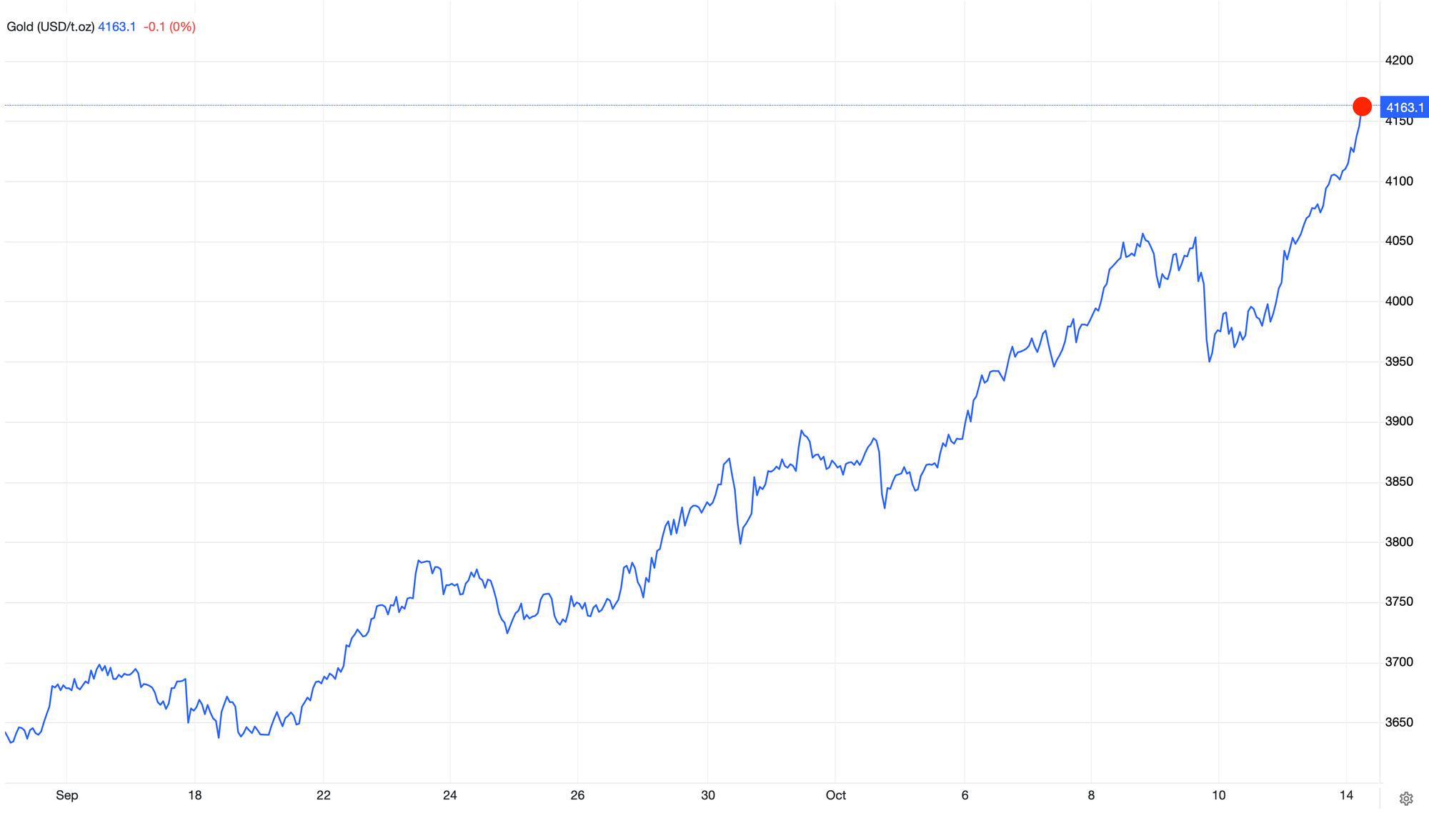 Gold soared to a record $4,140 amid renewed trade war between the US and China and rising expectations of Fed rate cuts. Bitcoin remains under bear pressure; if market stress persists and the structure index does not rise above zero by the end of the week, the Bitcoin market risks getting stuck in a range with downward bias.
