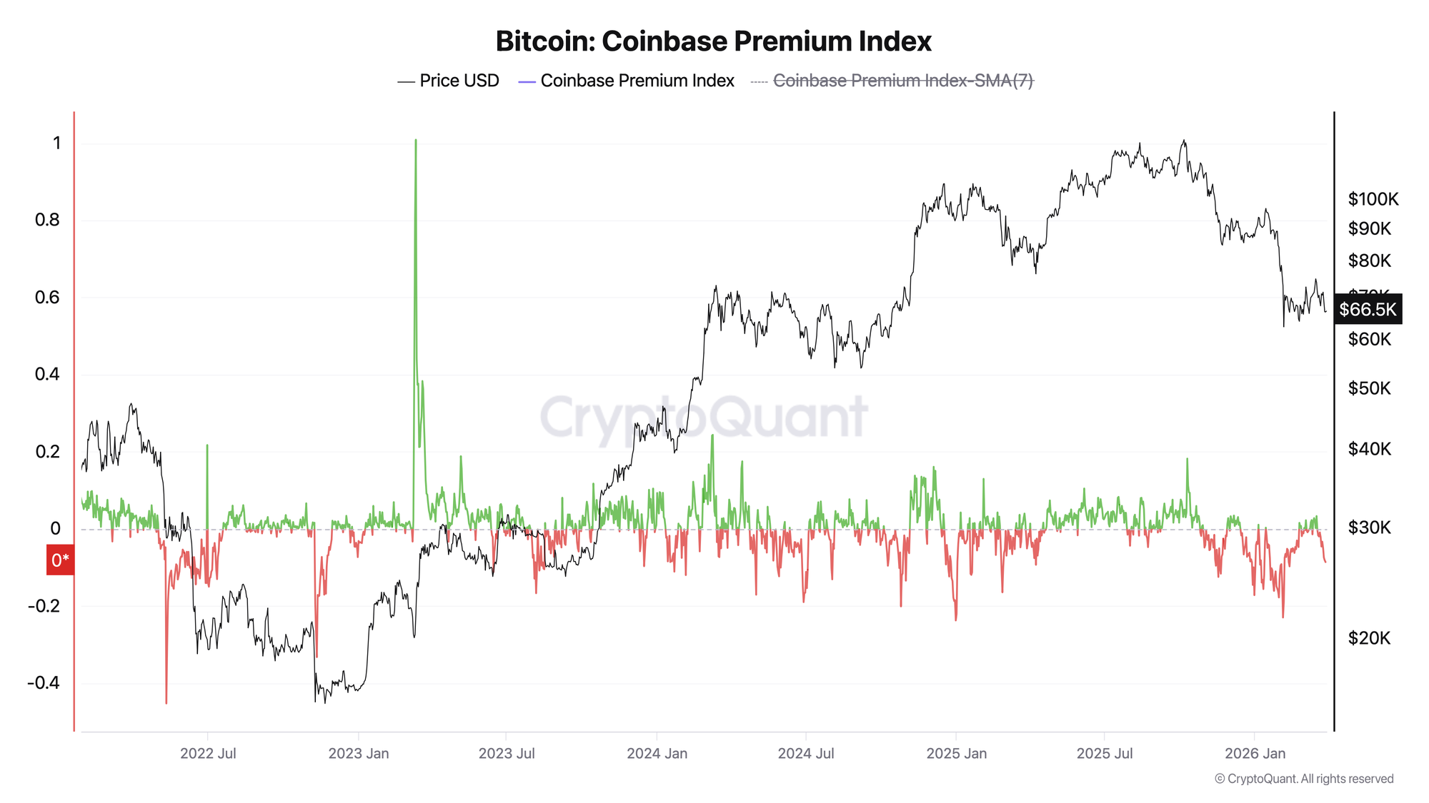 - Coinbase Premium persistently negative (SMA-7 < -0.05)