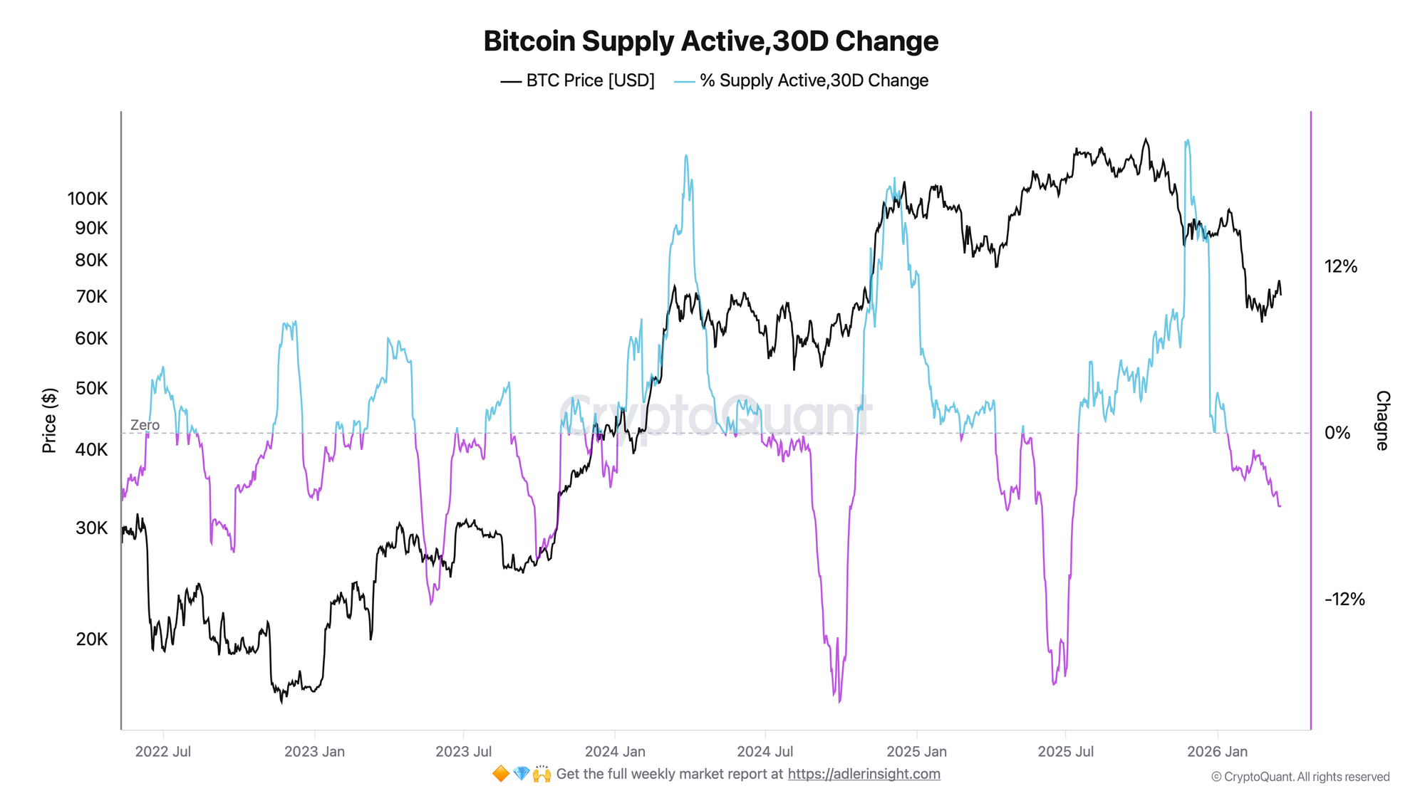 Bitcoin Supply Active, 30D Change