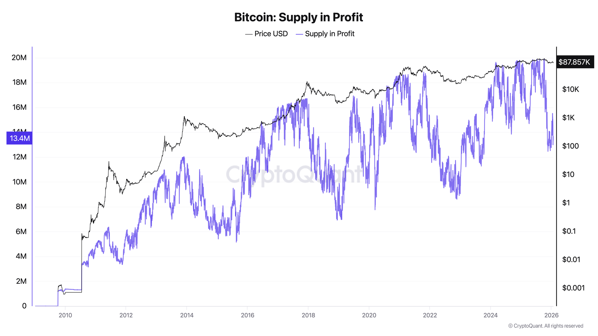 Current reading (January 2026): ~68% of supply in profit