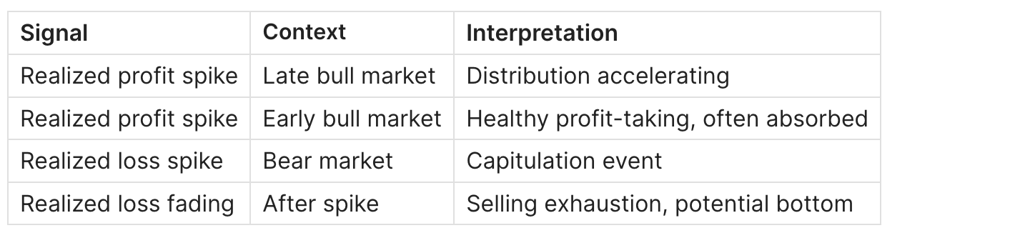 Unlike NUPL (state metric), Realized P/L measures flow - how much profit or loss is being locked in per day/week.
