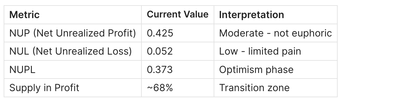 - NUPL movement toward 0.5+ would signal strengthening bull